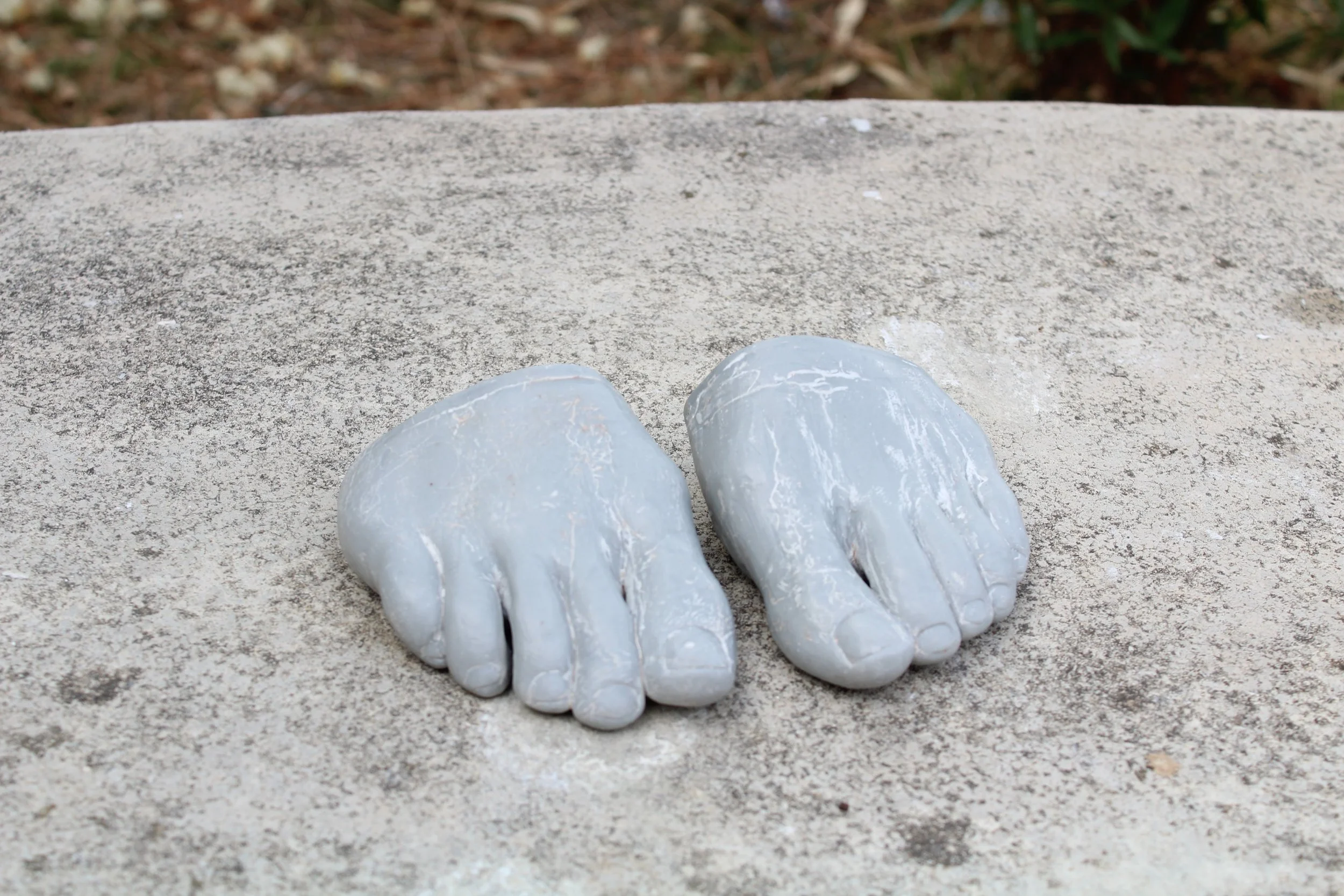 I piedi e la mano realizzati in cera dall’aspetto marmoreo sono una delle tante illusioni presenti nell’installazione dove la rappresentazione apparente supera la vulnerabilità della cera, incarnando la natura fluida e mutevole dell’essere.